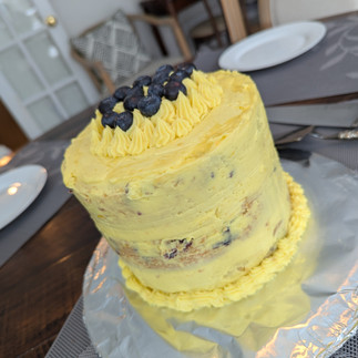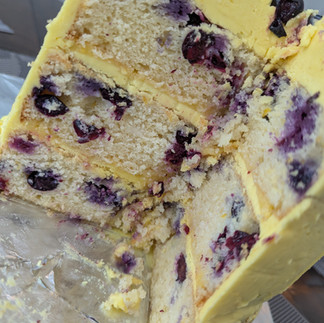 Great! I put both curd and buttercream between each cake layer, and it really brought out a nice lemon flavour. With more blueberries in each slice, it also had a better balance between the two fruit flavours than the cupcakes did.